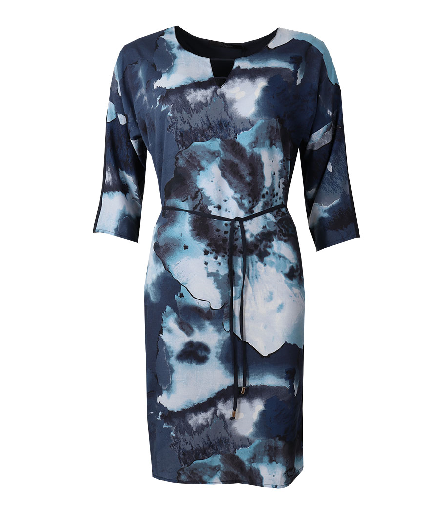 Lækker kjole til hverdag og fest i blå med print. Køb unikt tøj til hverdag og fest hos Ladies Fashion. Gratis fragt ved køb over 500!