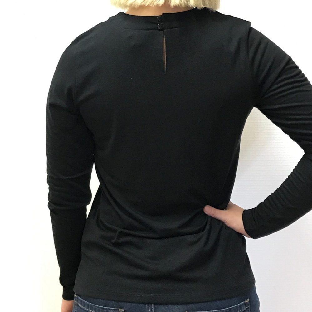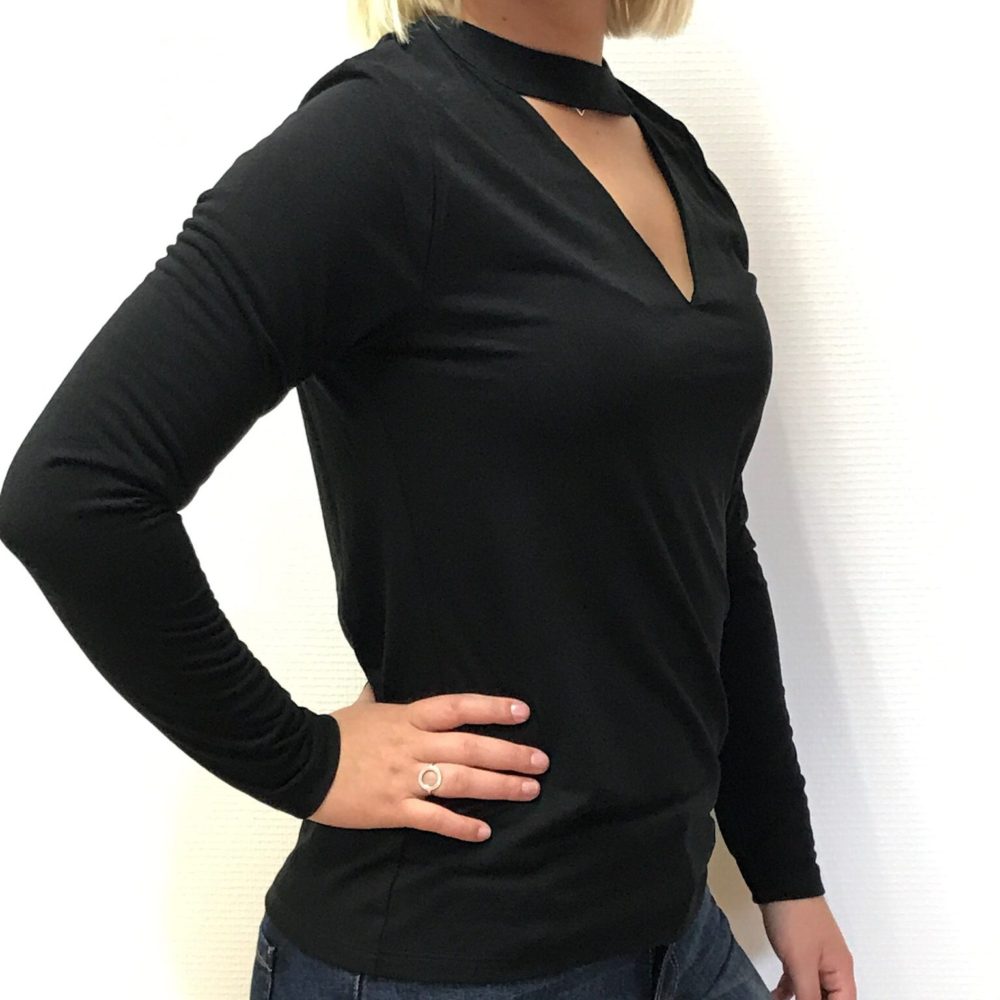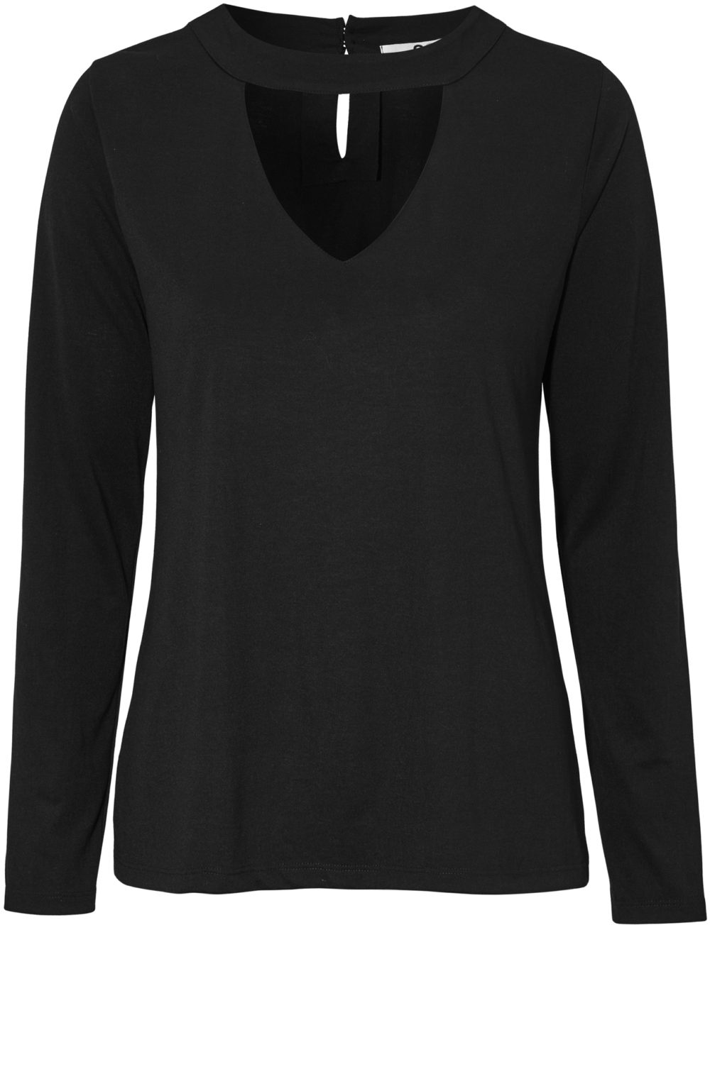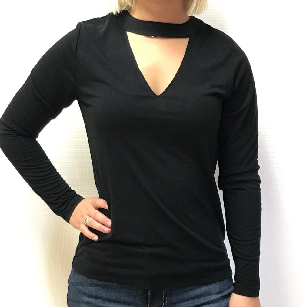 | Beskrivelse | En cool top med trendy choker krave i nakken. Blød V-halset forside og lille dråbeformet hals på bagsiden, der åbnes med to knapper. |