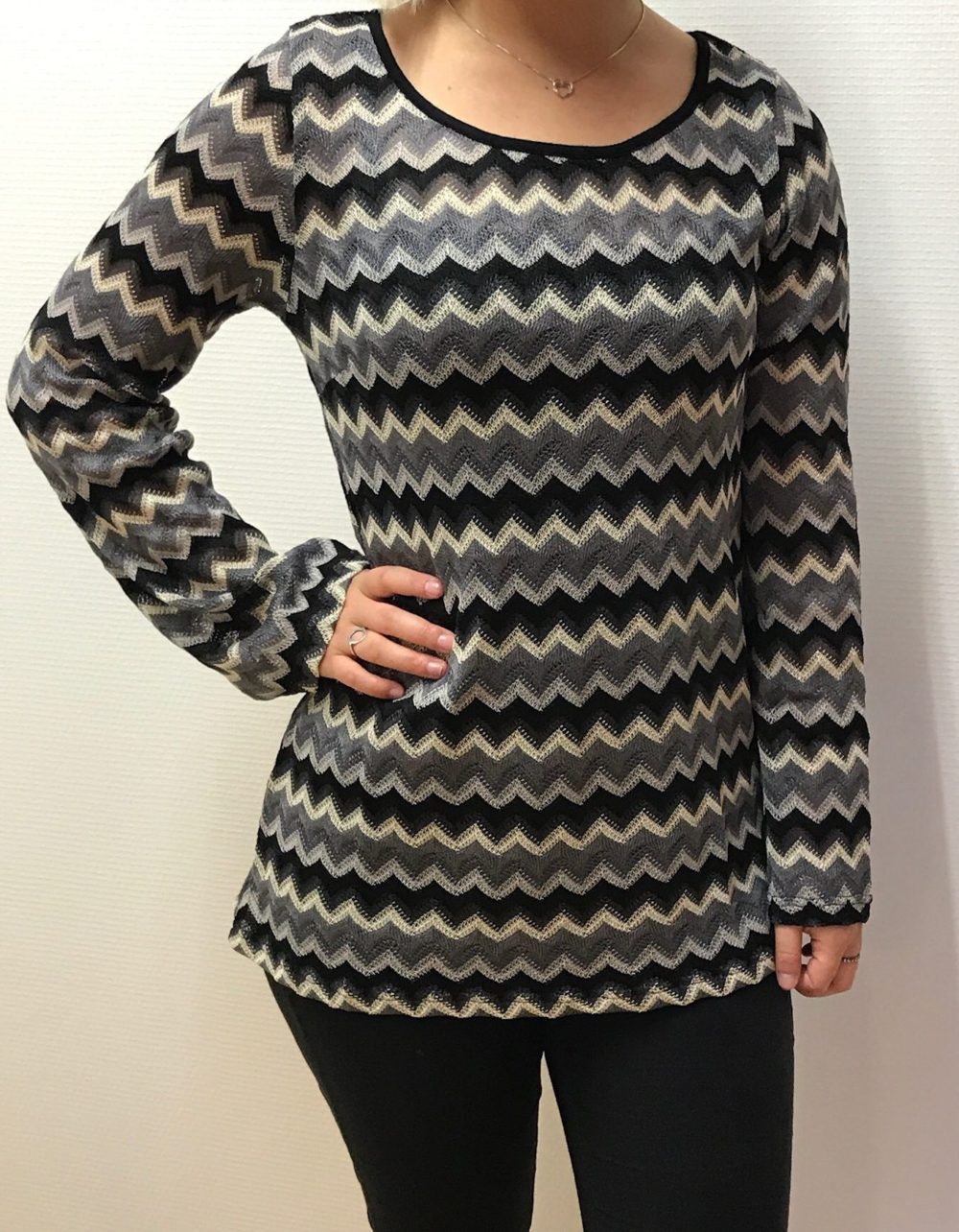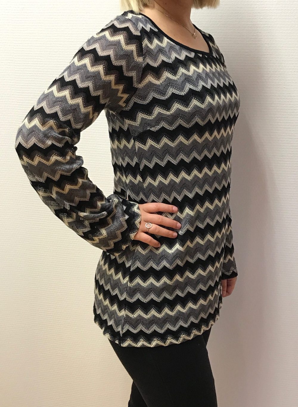 Stilfuld syltetøjsmønstret tyndstikket tunika i smukke blå / grå toner! Lette ærmer og lidt A-formet. Køb unikt tøj til hverdag og fest hos Ladies Fashion. Gratis fragt ved køb over 500!