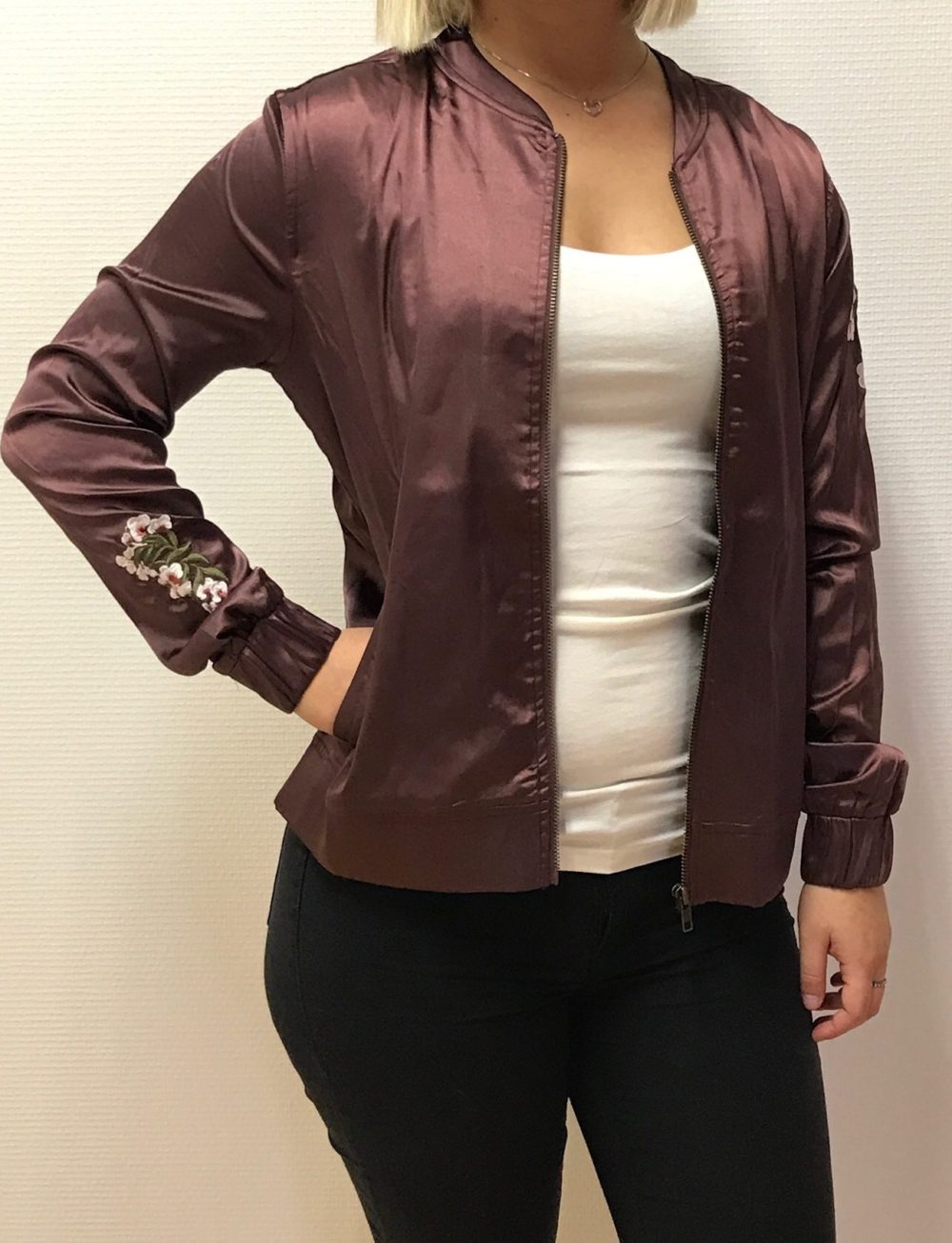 | Beskrivelse | Mason Bomber Jacket er en klassisk model. Satin-kvalitet med lyster og smukke broderi på ryggen samt matchende broderi på begge ærmer. |