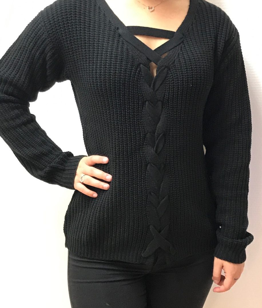 | Beskrivelse | Super fin strikket sweater med bånd detaljer – en af de store trends i efteråret. Lavet i blød og behagelig bomuld / akryl. Zick / zack snøring hele vejen både for og bag Fås også i farve Magnolia. |