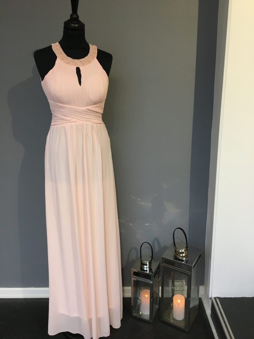 Super flot gallakjole i lyserød med palietter og sjal. Man plejer at gå en størrelse op, da det er kjoler fra Paris. Køb unikt tøj til hverdag og fest hos Ladies Fashion. Gratis fragt ved køb over 500!