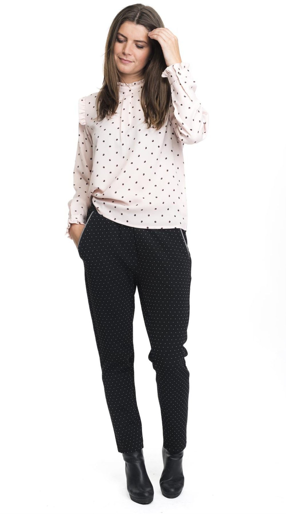 | Beskrivelse | En lækker buks med små prikker og syning ved lommer |