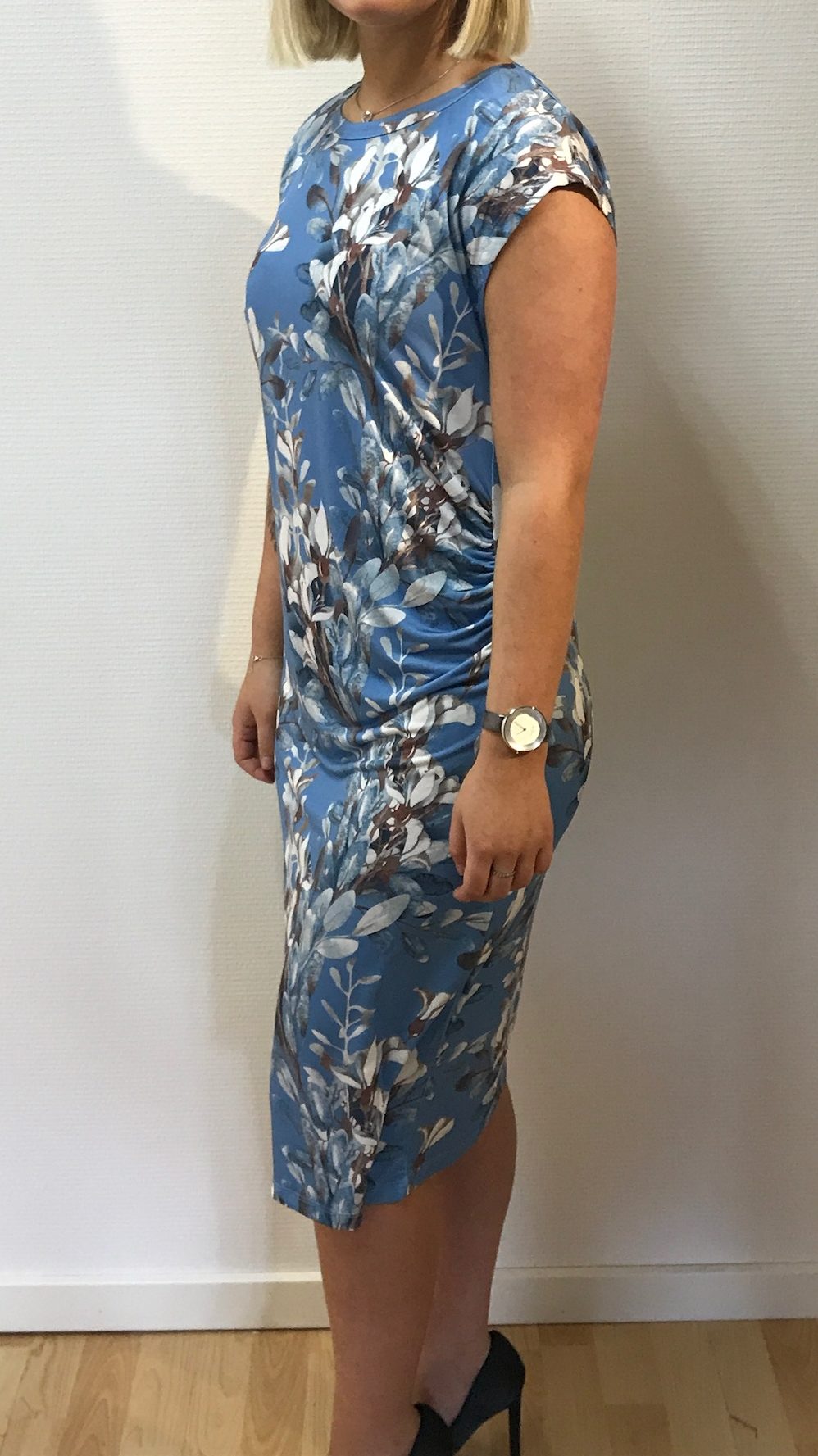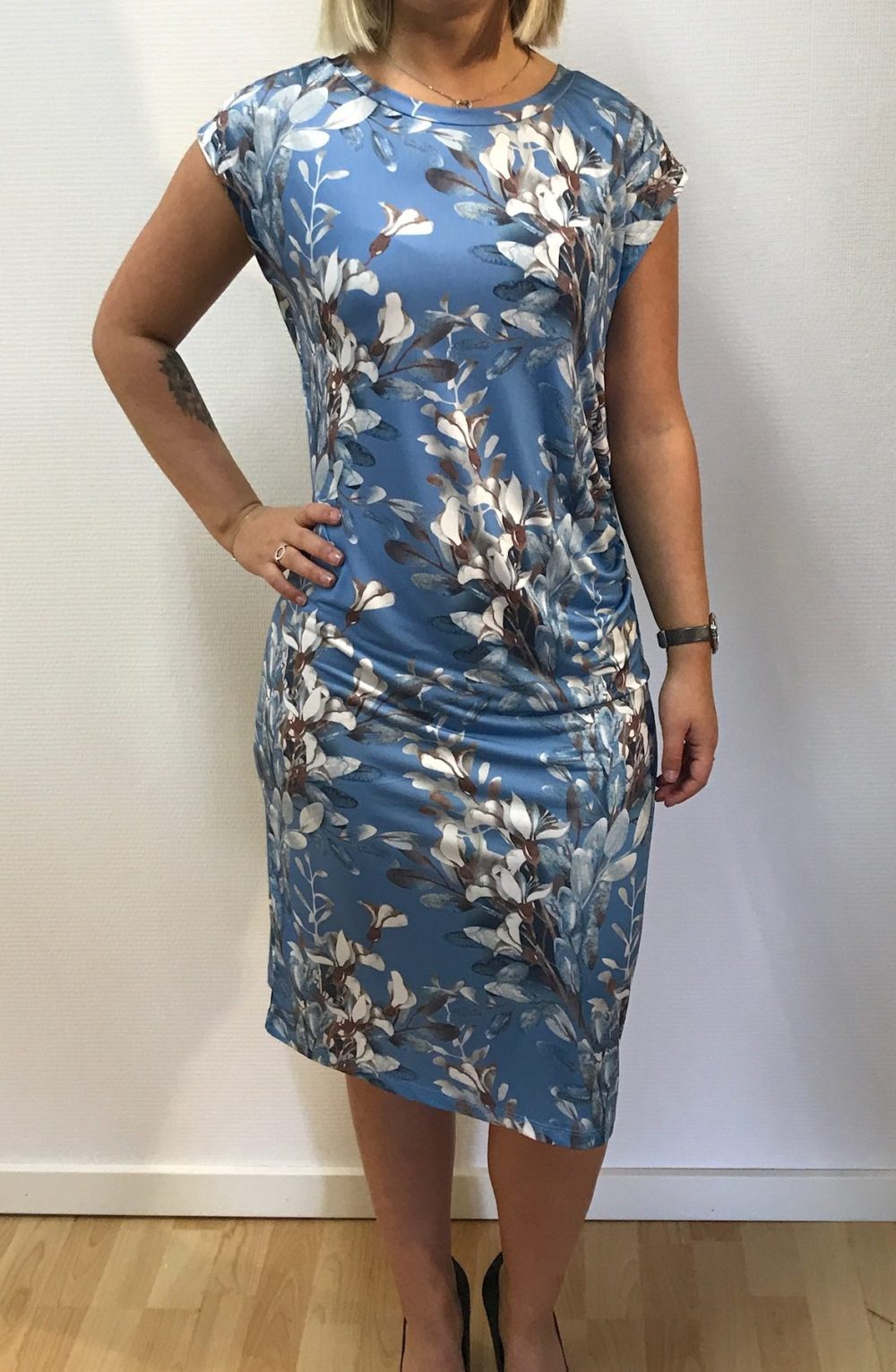 Lækker kjole til hverdag og fest i blåt print. Køb unikt tøj til hverdag og fest hos Ladies Fashion. Gratis fragt ved køb over 500!
