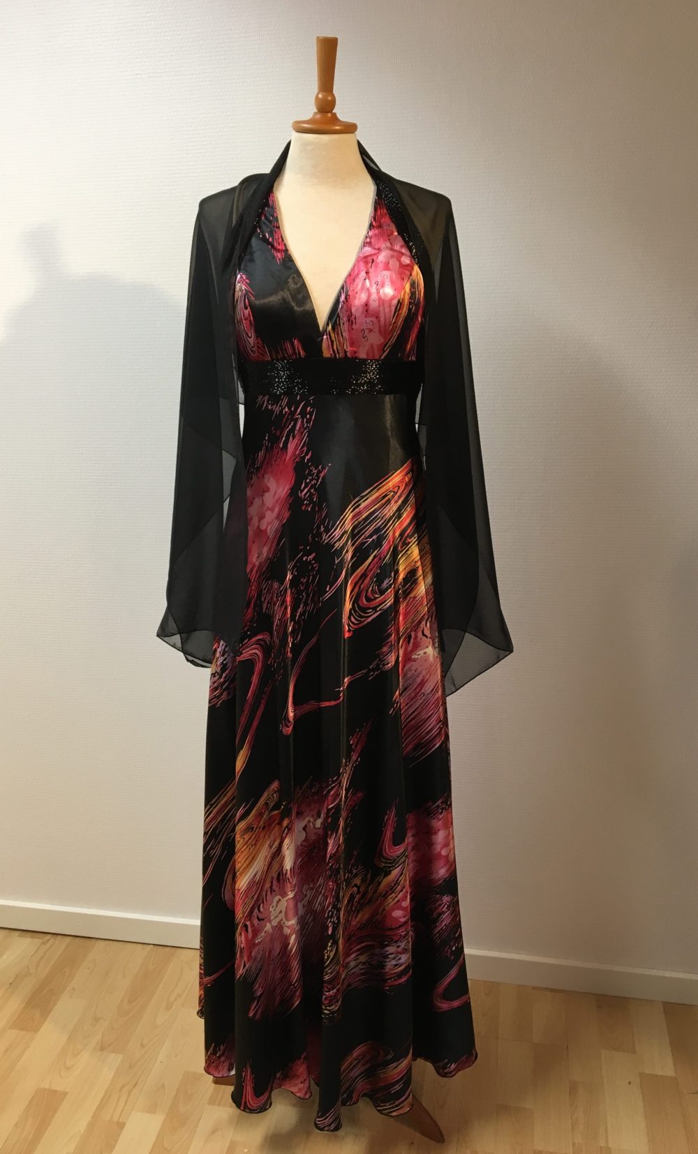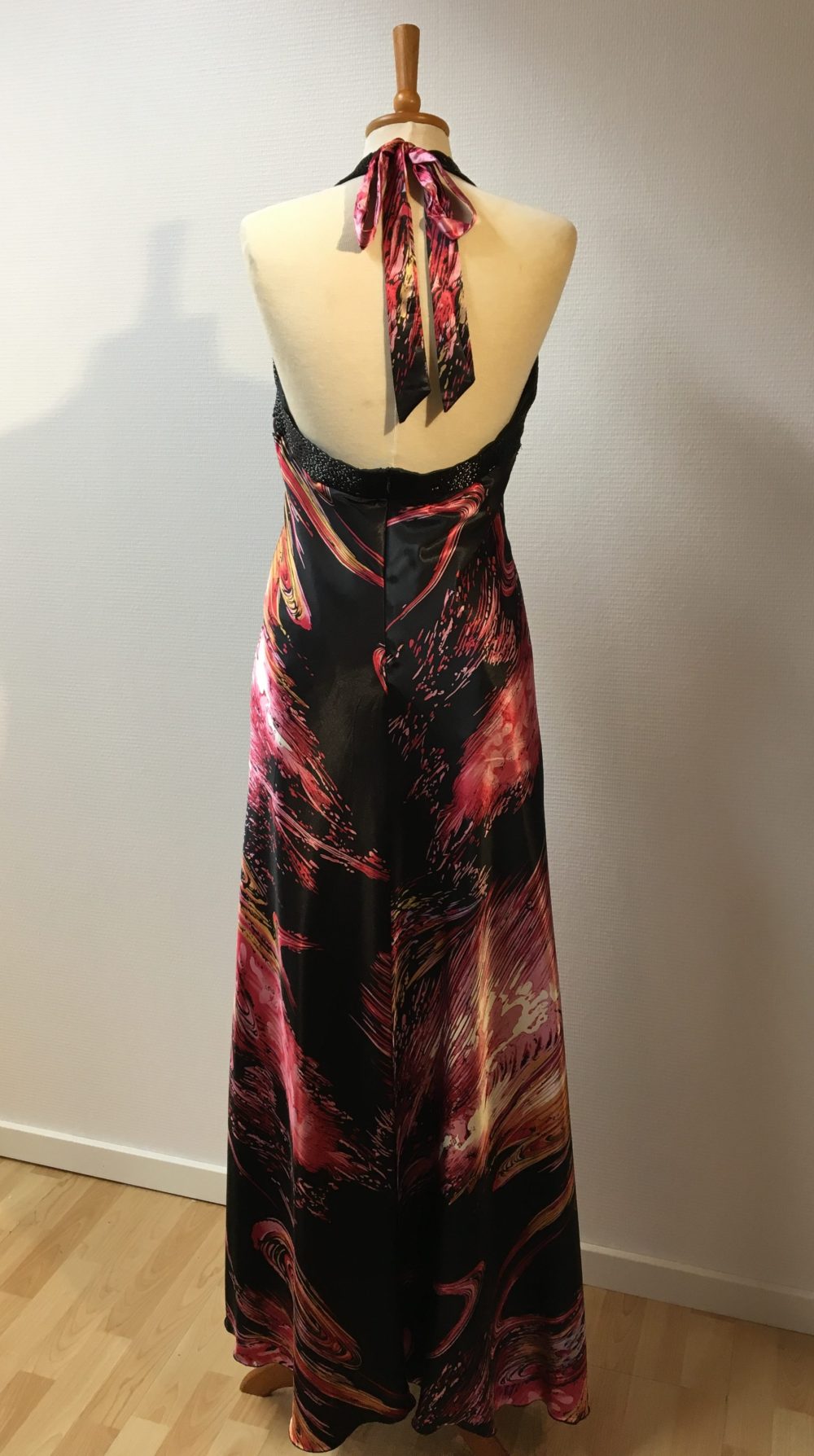 Super flot gallakjole i sort og pink til enhver festlig lejighed. Man plejer at gå en størrelse op, da det er kjoler fra Paris.