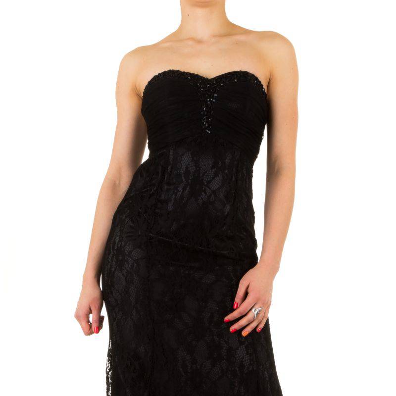| Beskrivelse | Lækre gallakjole med blonde Perler i sort foran og lynlås bagpå med tyl sjal |